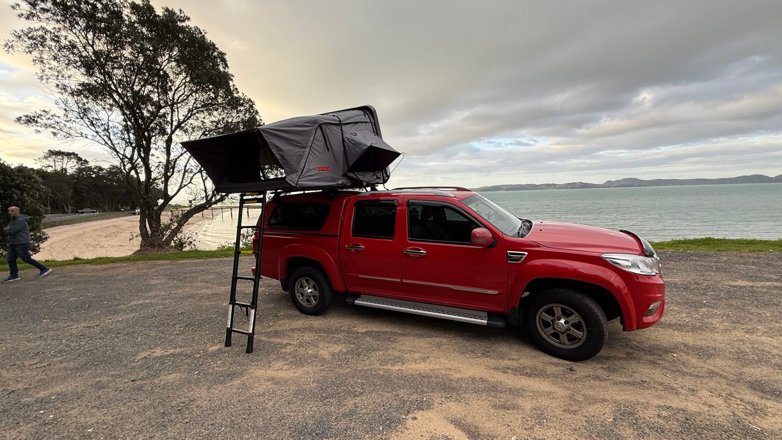 This is a 5-seater Ute converted into a clever, compact camper for travellers who want comfort without complexity. It’s built for beaches, gravel roads, and classic New Zealand backcountry routes, offering the freedom of a ute with the convenience of a fully equipped camping setup. The rooftop tent opens in seconds into a spacious sleeping area for up to three people, giving you a comfortable, elevated place to sleep with flyscreens and a weatherproof hardshell for all conditions.