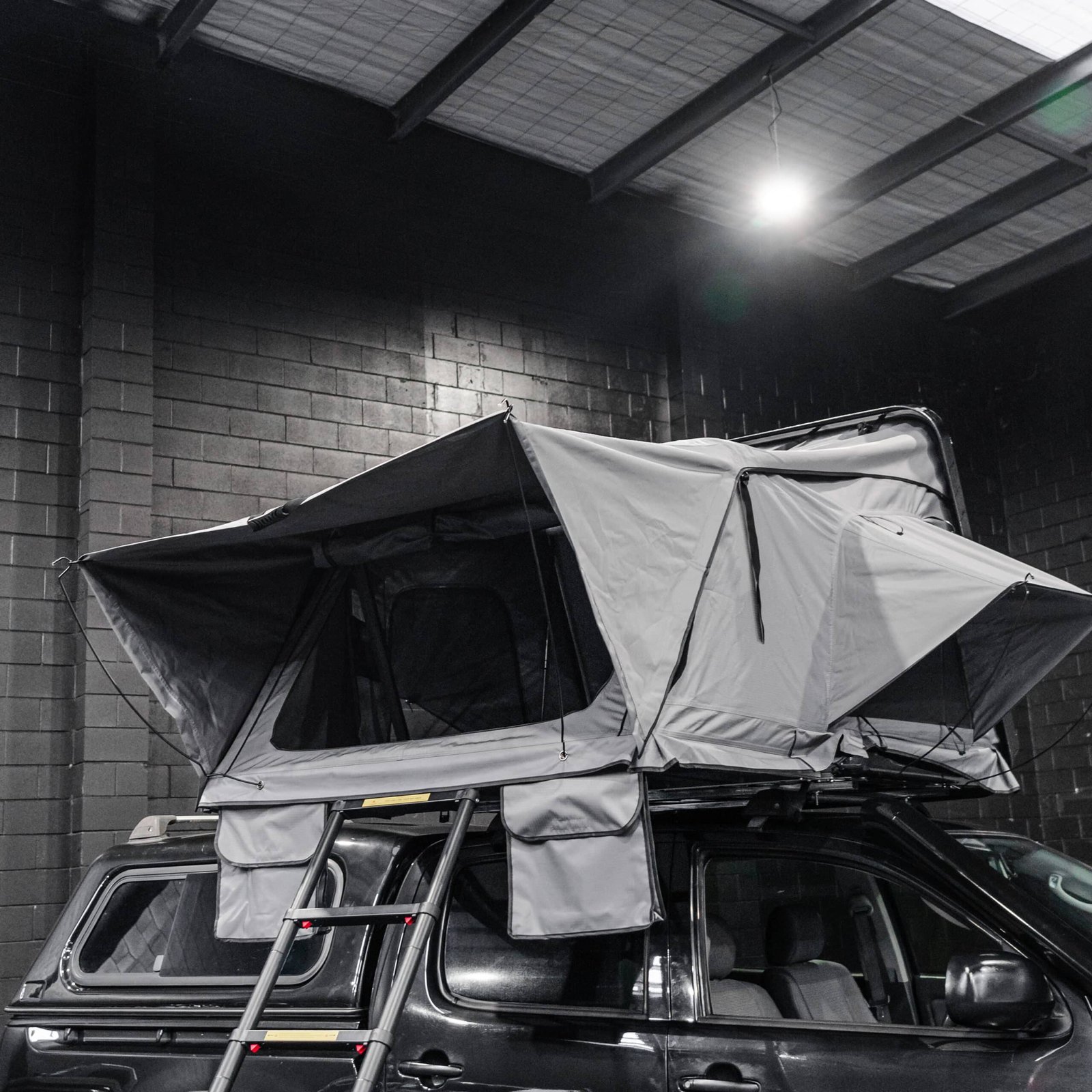 - Defender Off-Road Cantilever Hardshell Rooftop Tent: Quick-set rooftop tent with flyscreens, skylight, LED lights and high density mattress – Sleeps 2 adults + 1 child (approx. 215cm x 165cm)